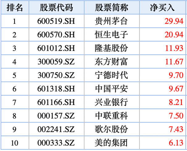 北上资金加仓茅台、恒生电子、隆基股份、东方财富,抛售京东方A、格力电器;