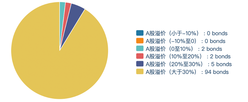 本周共有94只A股溢价超过30%,有7只A股溢价在10%-30%之间。