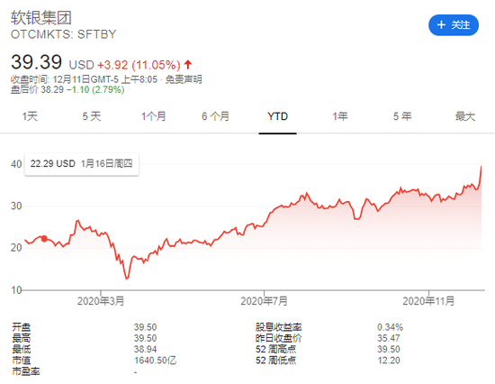 市场认为,软银今年前三个季度的投资表现并不佳,但受到市场整体气氛的带动以及该公司推出的全球规模最大的230亿美元的股票回购计划的提振,软银股价今年表现非常好。