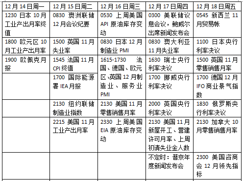 本周看点颇多,FDA将对Moderna疫苗进行审核,美联储、英国、日本、俄罗斯央行将举行议息会议,欧美主要经济体将公布12月制造业、服务业PMI,美国国会将继续财政刺激谈判。