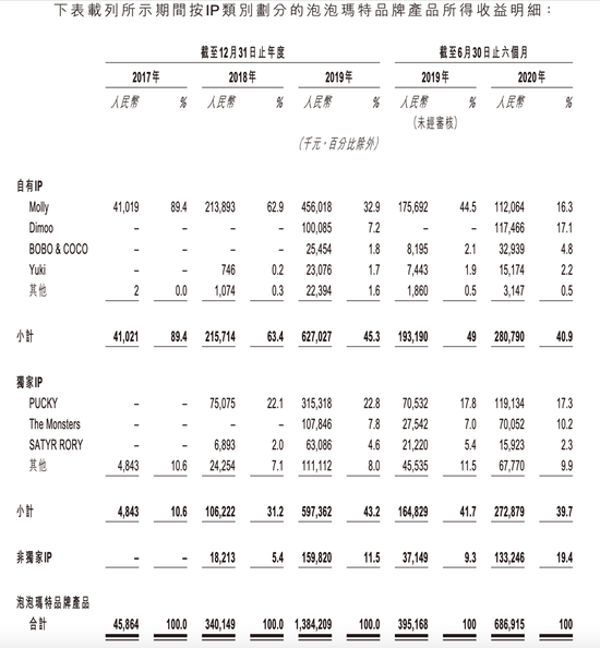IP运营是泡泡玛特的核心业务。截至2020年6月30日,泡泡玛特运营93个IP ,包括12个自有IP 、25个独家IP及56个非独家IP 。目前,已有4个IP产生的累计收入分别超过人民币1亿元,同时,泡泡玛特预计今年将推出超过30个新IP。