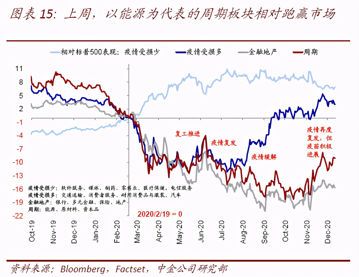 因此往前看,从上述三个变量角力的角度,疫苗积极进展和新一轮财政刺激出炉都有望成为提振情绪的新催化剂,但由于疫情仍在升级且预期提前计入,我们预计短期市场更多受此影响和压制,等待新催化剂出现。