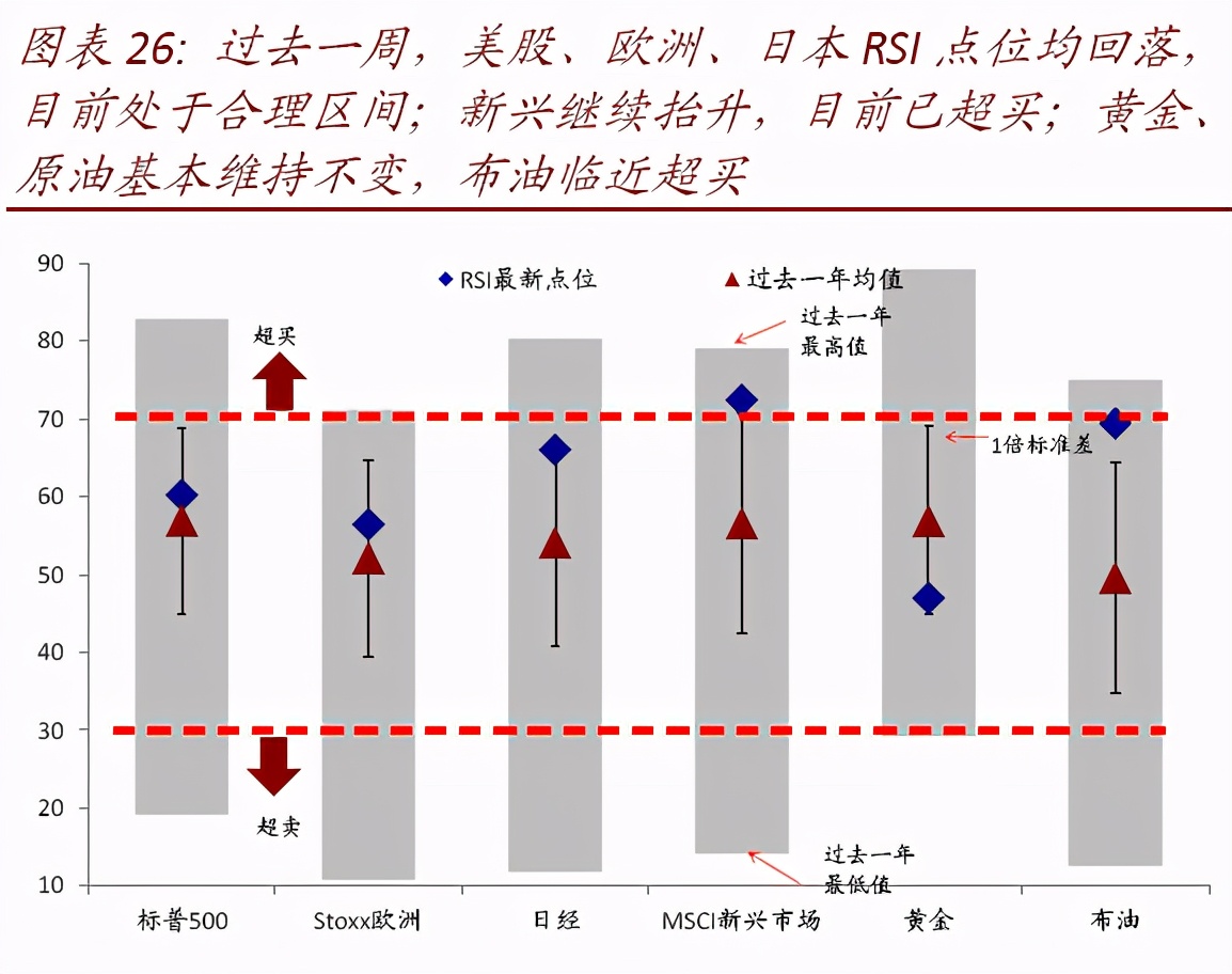 经过上周局部的盘整回调后,部分市场和资产的超买情况已经得到缓解,美股和美元的空头仓位也明显增加;但铜期货多头再创新高,新兴市场和原油也依然超买。