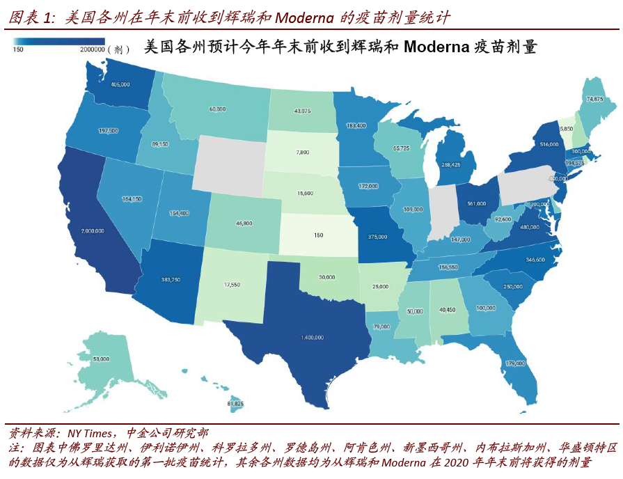 ii. 疫苗:FDA批准美国首支疫苗使用,接下来关注获批疫苗具体投放情况。最初的疫苗分配将仅能覆盖美国人口的一小部分,最有可能在医院和其他医疗机构中被率先使用,而大规模的接种最早可能在明年进行。