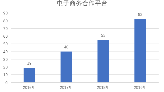 与此同时,合作电商平台数也由2016年的16家,增长至2019年的82家。有意实现线上线下‘两手抓’。
