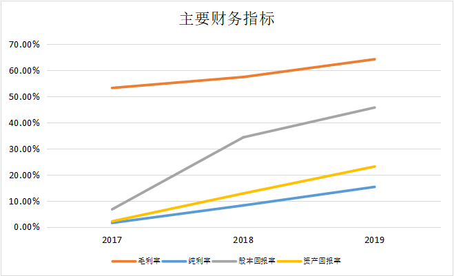 同时,随着营收的增长,2017-2019年,蓝月亮的毛利率、资产回报率等主要财务指标也均呈上升态势。