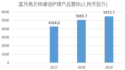 品牌竞争力的形成,也带来了营业规模的持续增长。根据弗若斯特沙利文报告,蓝月亮在中国洗衣液市场的市场份额连续11年(2009年至2019年)位居第一。
