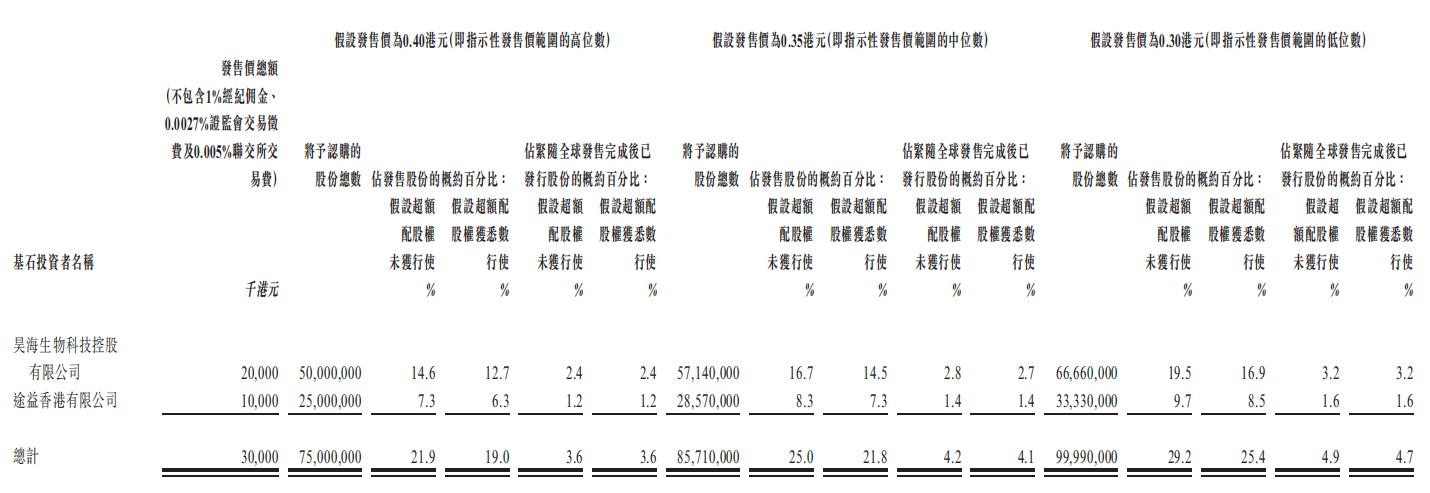 本次IPO引入昊海生物科技及途益香港作为基石投资者已同意按发售价分别认购总金额2000万港元及1000万港元可购买的发售股份,基石认购份额占全球发售25%(按发行价中间价计)。