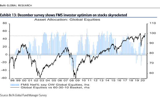 根据美国银行的调查数据,投资者对股市的乐观情绪达到2018年1月以来最高水平,基金经理在股市的敞口仍保持在43%。