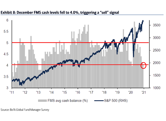 怀着对经济复苏的乐观态度,基金经理一直在削减现金头寸,部署风险资产,其程度引起了美国银行策略师们的警觉。