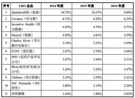 2018年,主营业务为小分子化学药发现、研发及生产的药明康德在上交所主板上市。公司招股说明书数据显示,2016年药明康德全球市场份额达到2.02%,排名全球第10位,中国第1位。