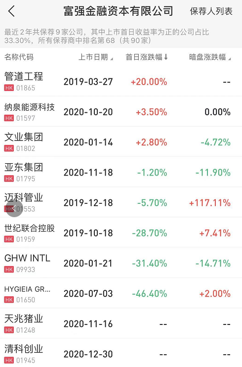 从保荐人过往历史角度,清科创业的保荐人富强金融资本近两年保荐的9家公司战绩一般,其中表现较好的有管道工程和迈科管业,上市首日破发率较高,投资者可供参考。