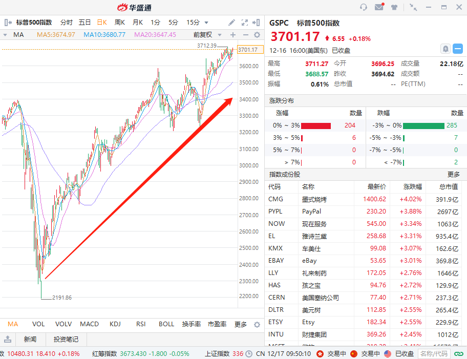 经历过历史级别的大暴跌后,美股迅速反弹,年内不仅收回全部跌幅,并且相对于年初上涨14.56%(行情统计截止于12月17日),不仅爬出大坑,并且创出历史新高!