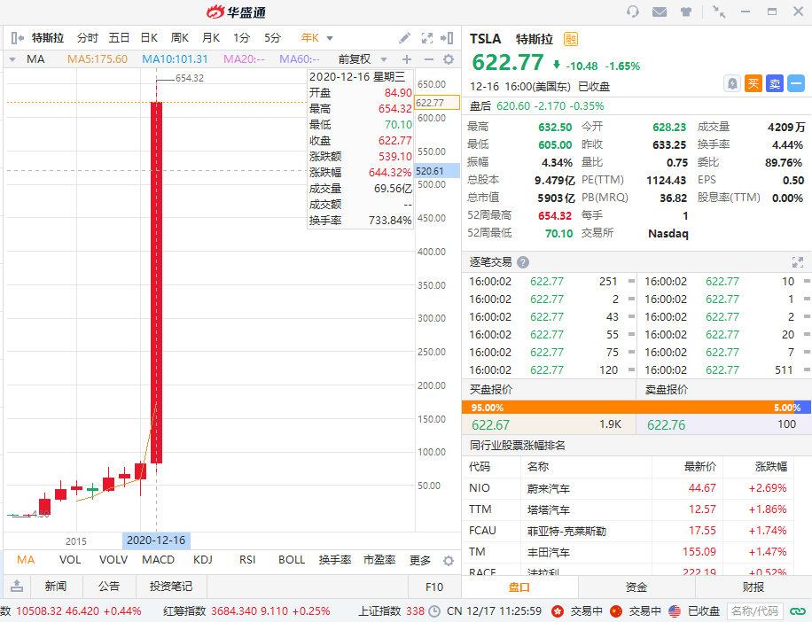 1月14日,福布斯实时富豪榜更新,特斯拉CEO马斯克个人财富排在第30位,这是他首次进入Top 30,就在同一年,马斯克又成为了全球第二富豪,这样堪称前无古人的创富奇迹。这样的财富增长速度来源于特斯拉的惊人涨幅,仅仅一年,特斯拉上涨644.32%。除特斯拉以外,蔚来也在同年大涨1011.19%,小鹏、理想等新上市企业也在美股大放异彩。