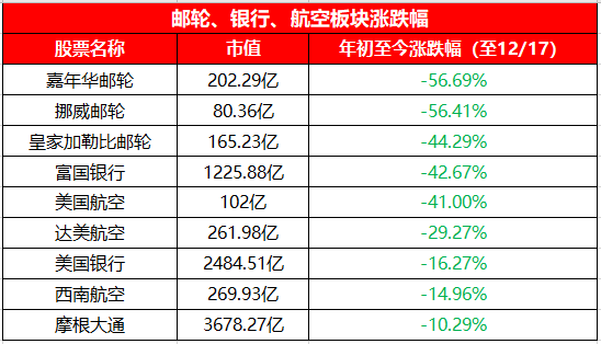 科技股的大涨之下,也有银行、邮轮、航空板块的低迷,不过在科技股暴涨,价值股低迷的市场环境下,不少分析师明年更推荐这些落后于大盘的价值股。
