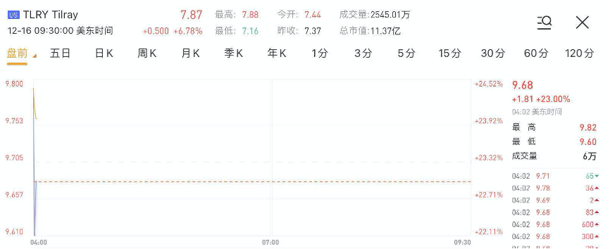 Tilray(TLRY)和Aphria(APHA)盘前分别涨23%与13.7%,两公司今日宣布达成合并协议,将组建全球最大的医药大麻企业。