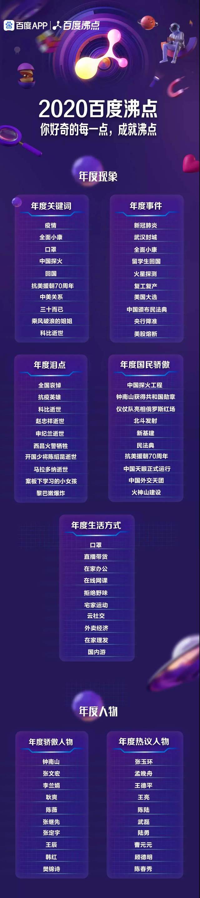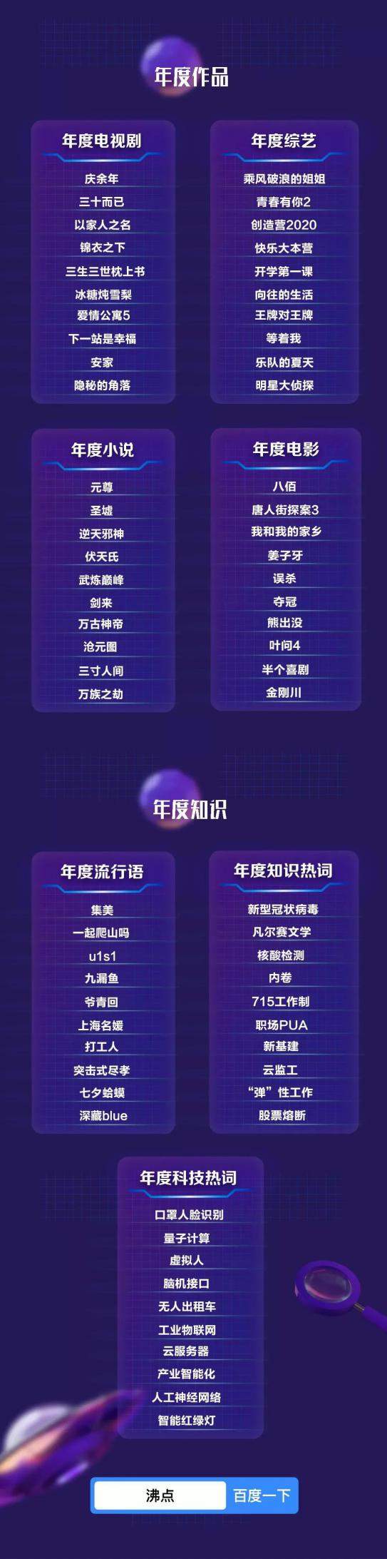 而这均得益于背后的优质内容。从2020百度沸点榜单中可以发现,人们对优质内容的追求依然狂热。