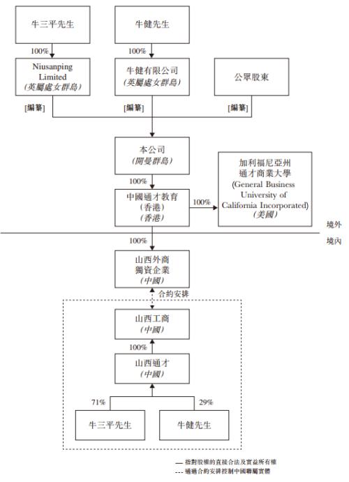 通才教育的控股股东为其创始人是牛三平,通过Niusanping Limited(牛三平公司)以及其儿子牛健的公司牛健有限公司实现100%控股,是典型的家族企业。同时,牛三平与其儿子牛健均在通才教育任职,牛三平为董事会主席、执行董事,牛健为行政总裁、执行董事。