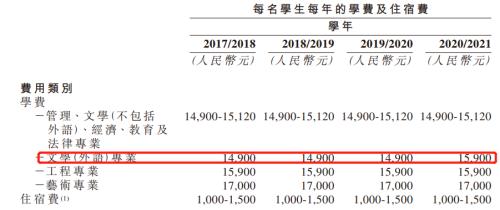 一般而言,教育机构的收费主要由学费和住宿费组成,从通才教育披露的数据可以看到,除了文学专业学费在2020/2021学年从14900元涨至15900元之外,其他专业学费和所有专业的住宿费都没有增长。