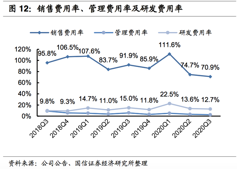拼多多的营销支出持续超过实际收入,导致公司长期处于亏损和高资产负债状态:2018年Q1至2020年Q2,拼多多有8个季度净亏损超过10亿元。2020年Q3,拼多多在市场费用方面投入了100亿元,市场费用率为70.88%,虽然同比下降21个百分点,但仍然处于高位。