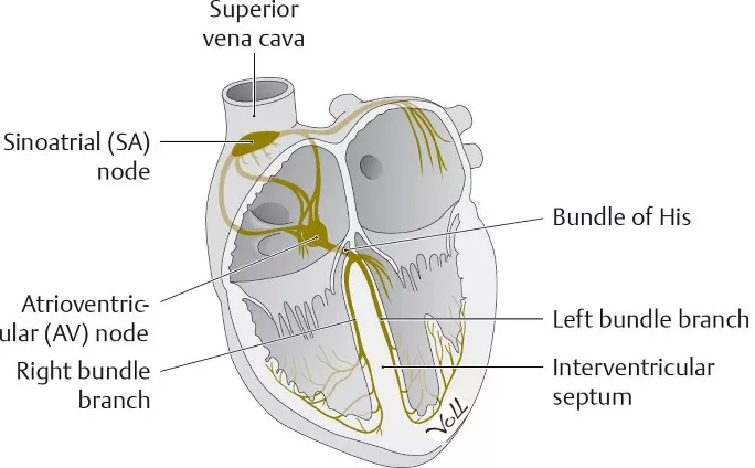 心脏的跳动是依靠位于右心房上部的窦房结(SA)自动且有节律的产生电信号并传导至心脏其他部位来维持的。如果这个过程出现问题,心脏活动就会出现异常。心律失常就是指心脏搏动发生异常,不再按照原有节律和频率工作。