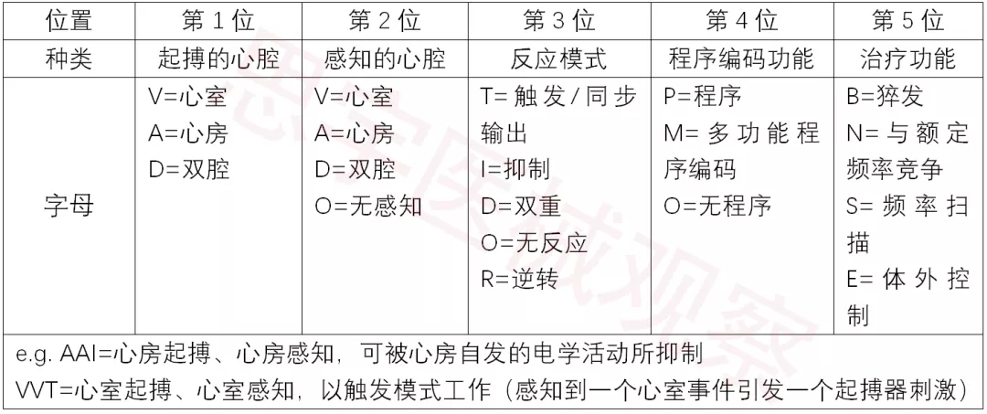 不同厂家不同型号的起搏器编码各不相同,1981年之前都采用3位编码法,1981年之后国际心脏病学会将代码增补为5位,但都遵循下述规则: