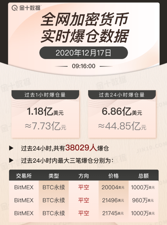 金十在早上的文章中也提到,机构投资者目前仍看好比特币,他们认为,突破2万美元心理关口仅仅只是开始,接下来将突破3万美元大关。古根海姆投资公司首席投资官米纳德(Minerd)甚至表示比特币最终将攀升至40万美元左右。