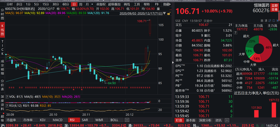 三是恒瑞医药虽然降价80%,但换来了4个获批适应证全部进入医保。包括霍奇金淋巴瘤(3线)、肝细胞癌(2线)、非鳞状非小细胞肺癌(1线联合)、食管鳞癌(2线)4个适应证。这也是恒瑞医药今日涨停的缘故,市值已经来到了5689亿元人民币。