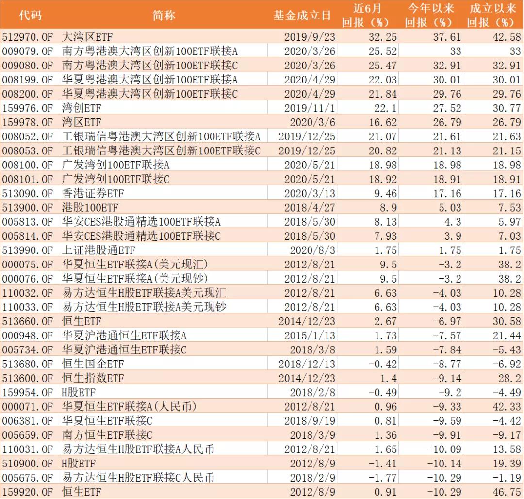 再来看看港股ETF基金的整体表现: