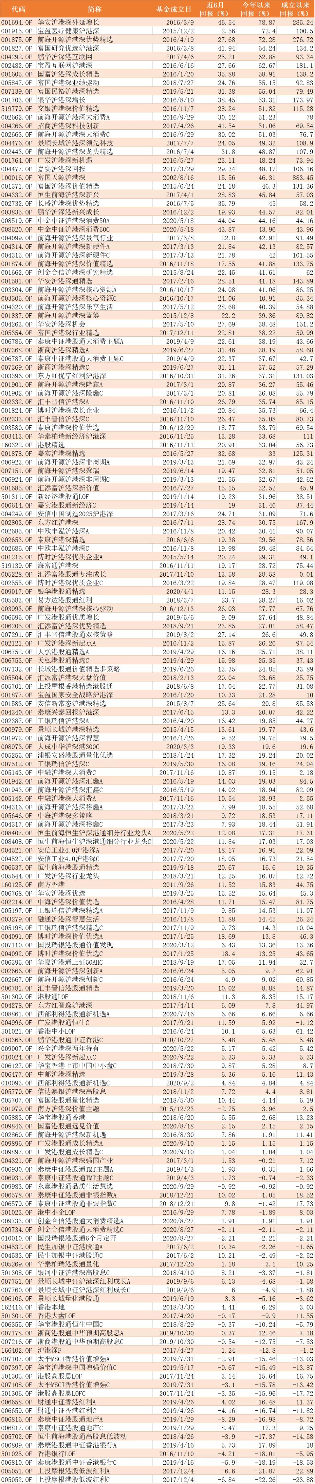 首先是投资港股的QDII基金: