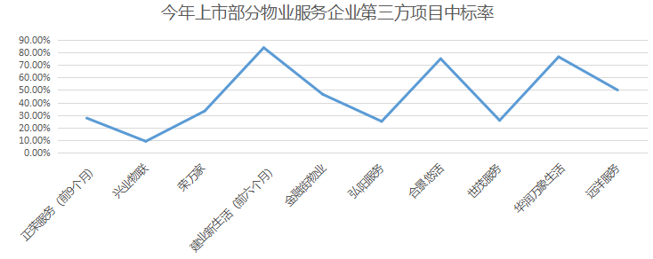 2017-2019年度以及截至2020年6月30日止六个月,远洋服务就管理其他第三方开发或拥有的项目中标率分别约为36.4%、40.9%、50.0%及50.0%,第三方拓展业务中标率处于业内中位水平。