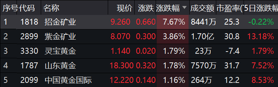 12月18日消息,黄金股集体反弹,招金矿业涨近8%,紫金矿业涨近4%,灵宝黄金、山东黄金、中国黄金国际涨超1%。