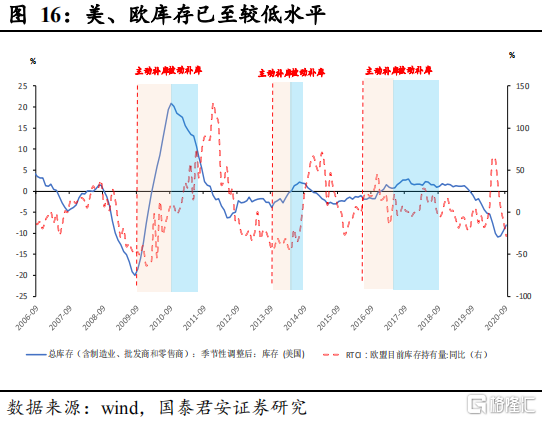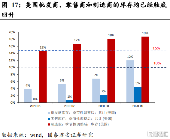 海外复苏三重奏之库存:销售环节补库或持续到2021年2季度,制造业加库持续到2022年。