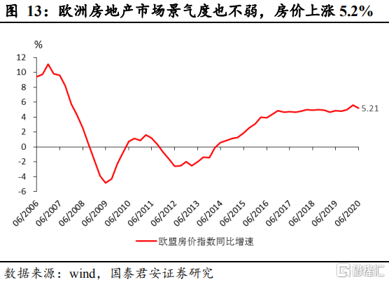 在低利率的环境下,房地产及汽车市场作为利率敏感的市场,居民买房买车大增。2020年疫情发生后,欧美的房地产和汽车市场恢复较快,市场景气度高。