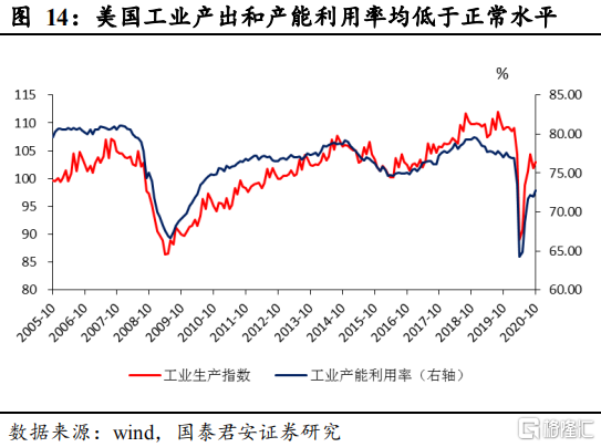 而由于疫情影响,生产难以完全恢复,截至2020年10月产能利用率较正常水平仍然低4-7个百分点。