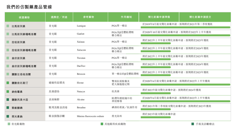 兆科眼科预计,2020年上半年将向国家药监局提交‘环孢素A眼凝胶’的新药申请,未来三年则就仿制候选药提交八项简化新药申请,并在2022 年前推出四种发展最成熟的接近商用阶段的仿制药。