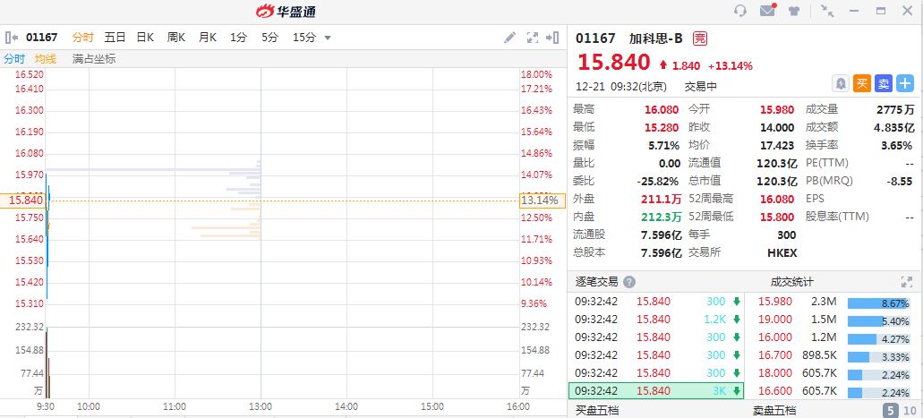 加科思-B(01167)今日首挂,开盘涨14.14%,目前涨13.14%,不计手续费,一手盈利552港元。