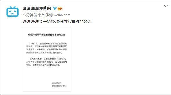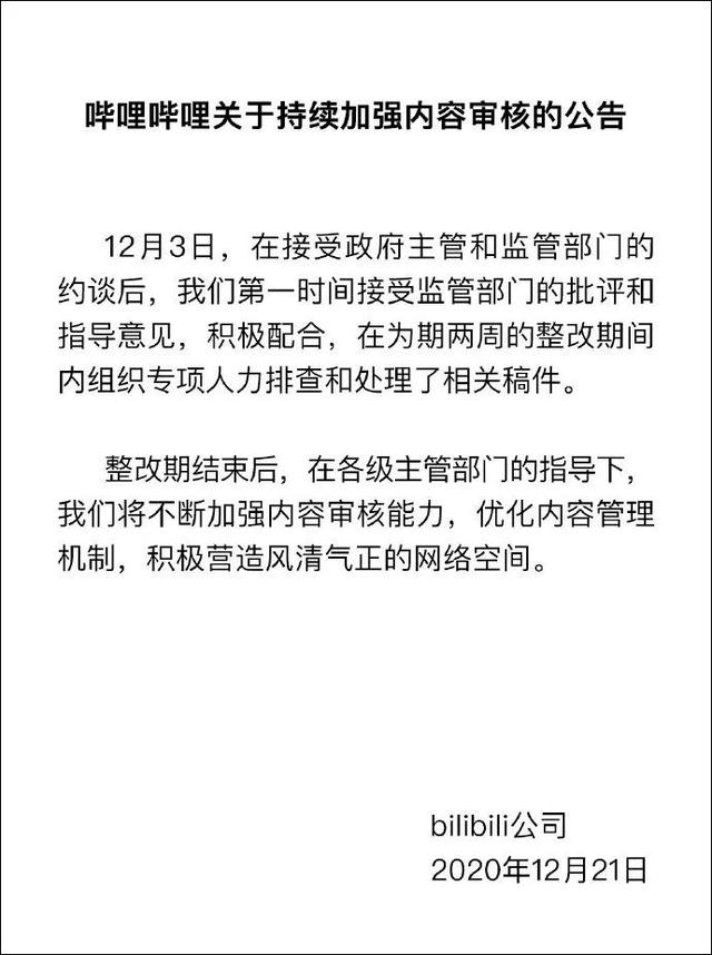 针对全国扫黄打非办公室的点名通报,今天晚间,@哔哩哔哩弹幕网 发布关于持续加强内容审核的公告。