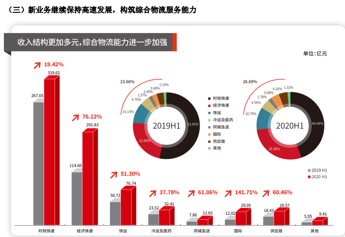 而顺丰的优势领域,时效件业务,则成为了其他各项业务增长的基石。