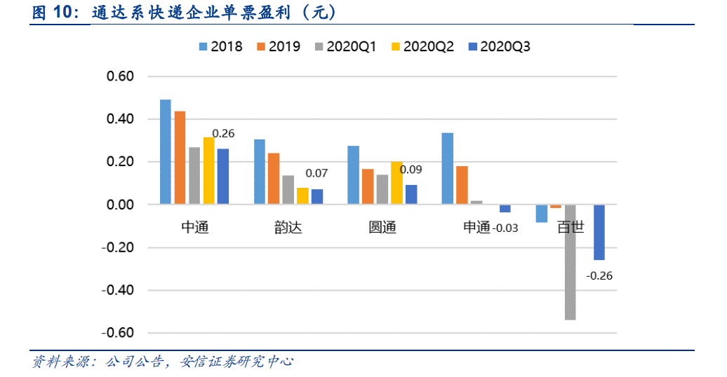 前三季度扣非利润:顺丰(51 亿,45%)>中通(33 亿,-9.9%)>圆通(12.1 亿,-9.7%)>韵达(8.5,-52%)>申通(亏损 0.5 亿);顺丰为前三季度扣非唯一增长公司。