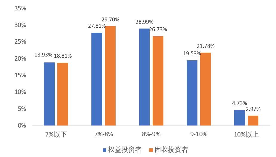 整体而言,受访者一致预期疫情后的潜在增速中枢较疫情前有所回落。超四成受访者认为疫情过后的中国经济潜在增速在5%-5.5%区间,另有近三成认为潜在增速在5.5%-6%区间,认为潜在增速在5%以下和6%以上的受访者占少数。