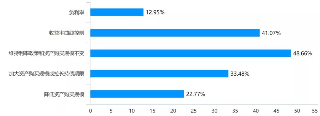 多数受访者认为美联储2021年会维持或加大宽松。近半受访者认为明年美联储会维持利率政策和资产购买规模不变,四成认为会采取收益率曲线控制,超过三成认为会加大资产购买规模或者拉长持债期限。仅两成认为美联储可能开始退出宽松(降低资产购买规模)。