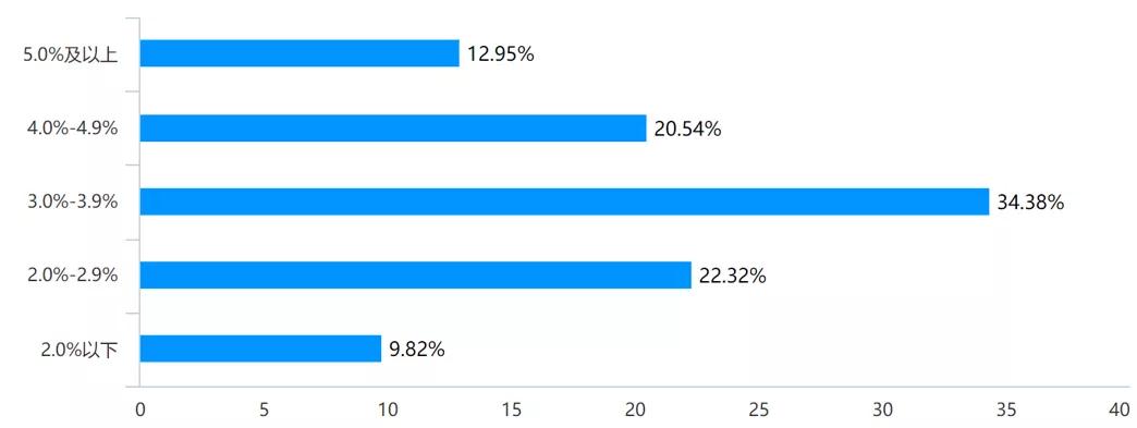 受访者对明年PPI的高点预测以3%-4%为中心向两边递减分布:超过三成受访者认为明年PPI高点在3%-4%之间,各有约两成受访者认为高点在2%-3%和4%-5%。认为高点在2%以下和5%以上的受访者占少数。