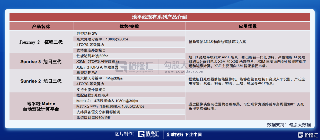 目前成功量产了专注于智能驾驶的:征程(Journey)系列 AI 芯片和专注于 AIoT 的旭日(Sunrise)系列 AI 芯片,并实现规模商用:并在2020年,地平线又推出了全新一代AIoT边缘AI芯片旭日3和新一代高效能车规级AI芯片征程3。