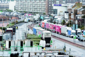 此前,为应对英国近期出现的变异新冠病毒,法国宣布从当地时间20日午夜起48小时内禁止来自英国的所有人员旅行,包括与公路、铁路、航空、水路有关的货运人员旅行。这给英国与欧盟国家之间的货物运输带来极大影响。自边境关闭以来,大约有2850辆卡车被困在英国肯特郡。
