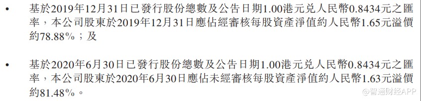 与此同时,该私有化价格较汇付天下2019年12月31日应占经审核每股净资产1.65元人民币高出78.88%,较2020年6月30日应占未经审核每股净资产1.63元人民币高出81.48%。