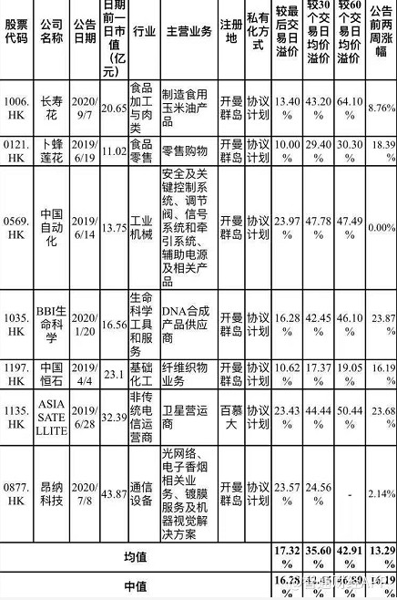 据智通财经App不完全统计,自2019年以来,港股私有化退市的企业有7家,其中包括了长寿花、卜蜂莲花、中国自动化、BBI生命科学、中国恒石、ASIA SATE LLITE、昂纳科技。该等企业分布在食品、工业机械、基础化工、通信、医疗等行业。