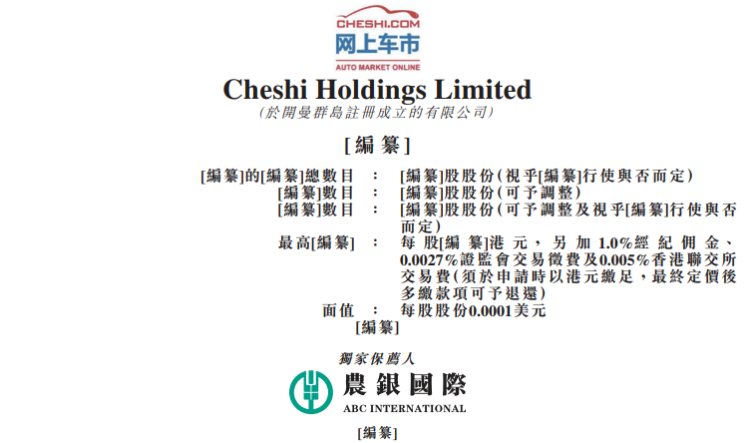 华盛资讯12月24日获悉,网上车市(Cheshi Holdings Limited)于本月23日通过港交所聆讯,农银国际担任其独家保荐人。