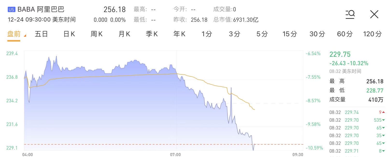 阿里巴巴美股盘前暴跌超10%,消息面上,阿里巴巴集团涉嫌垄断行为被立案调查。今日阿里巴巴港股收跌8%。阿里巴巴回应称将积极配合监管部门调查,目前公司业务一切正常。
