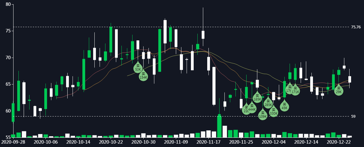 其中,近3个月ARK对贝壳的买入轨迹如下图: